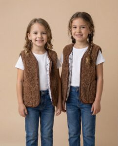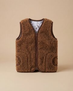 Laste vest ULA – soe, mugav ja kerge, ideaalselt sobiv jahedamateks päevadeks. See ei piira liikumist, nii et laps saab mängida, liikuda ja end mugavalt tunda nii sees kui väljas. Valmistatud looduslikust kaamelvillast.