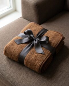 Kaamelvillal on tuntud võime hoida soojust, jäädes kergeks ja hingavaks. See kohandub looduslikult kehatemperatuuriga. Merinovill on erakordselt pehme ja õrn tundliku naha suhtes. Mõõt: 100 × 135 cm. Koostis: 70% merinovill, 30% kaamelvillast.