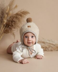 Laste kreem tallevillane müts pompomiga, Zaffiro