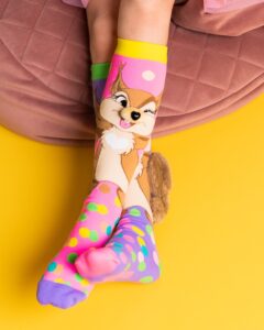 Lõbusa disainiga, pehmed ja mugavad – need värvilised sokid HAPPY SQUIRREL oravaga rõõmustavad igal päeval. Erksad värvid, mängulised mustrid ja armas orav teevad need sokid nii stiilseks kui ka praktiliseks.