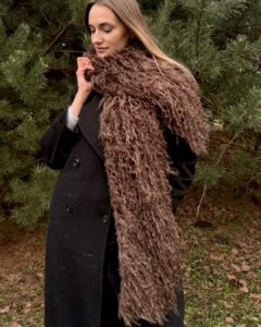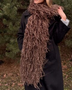Pruun pikk BOA-stiilis sall – silmapaistev ja luksuslik aksessuaar, mis lisab kohe elegantsust ja iseloomu igale riietusele.