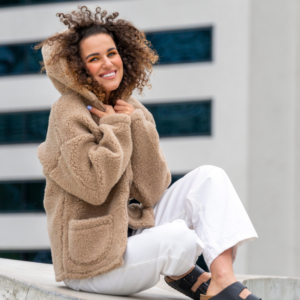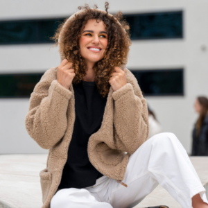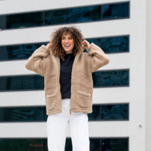 Zaffir lambavillast naiste pruun kapuutsiga jakk ZOYA